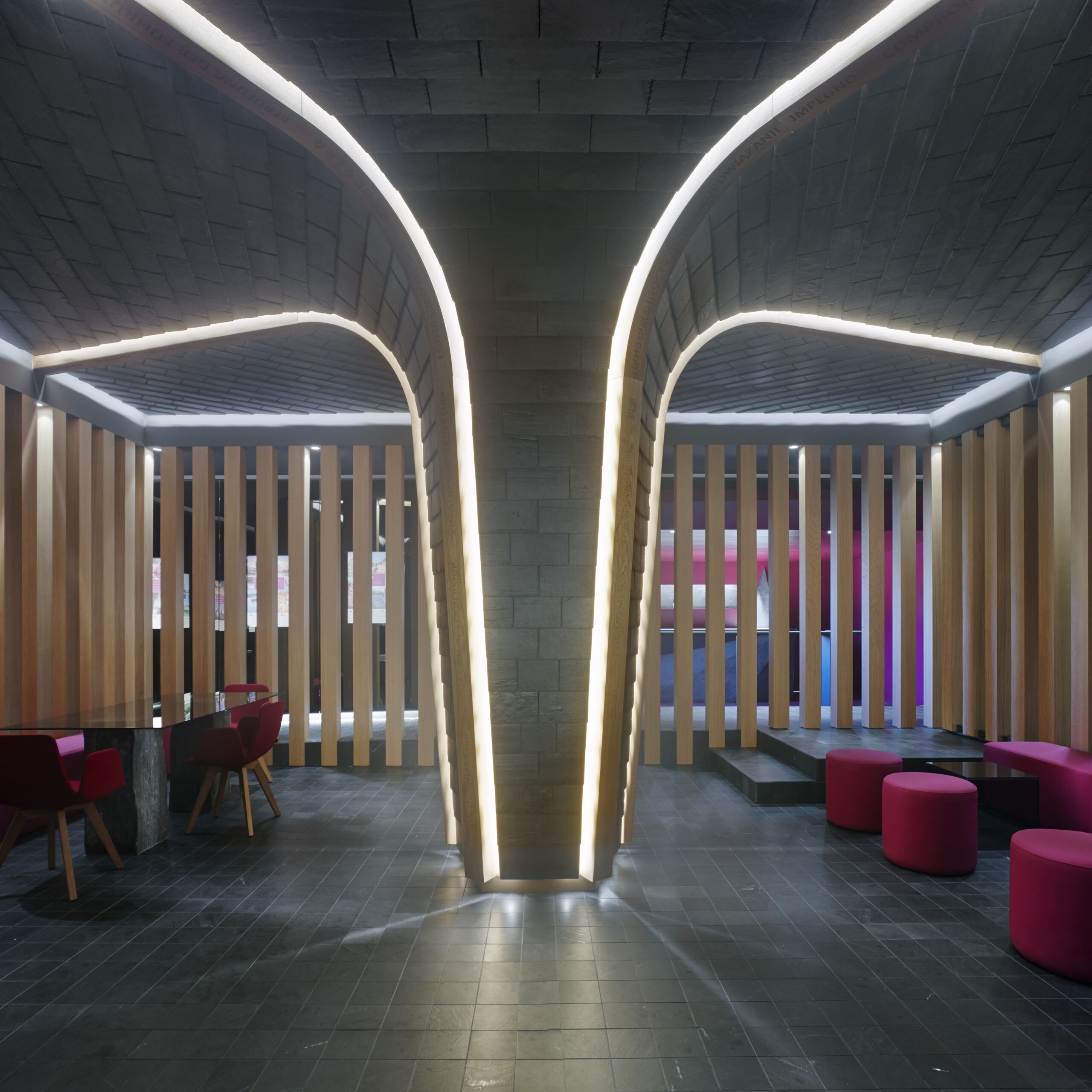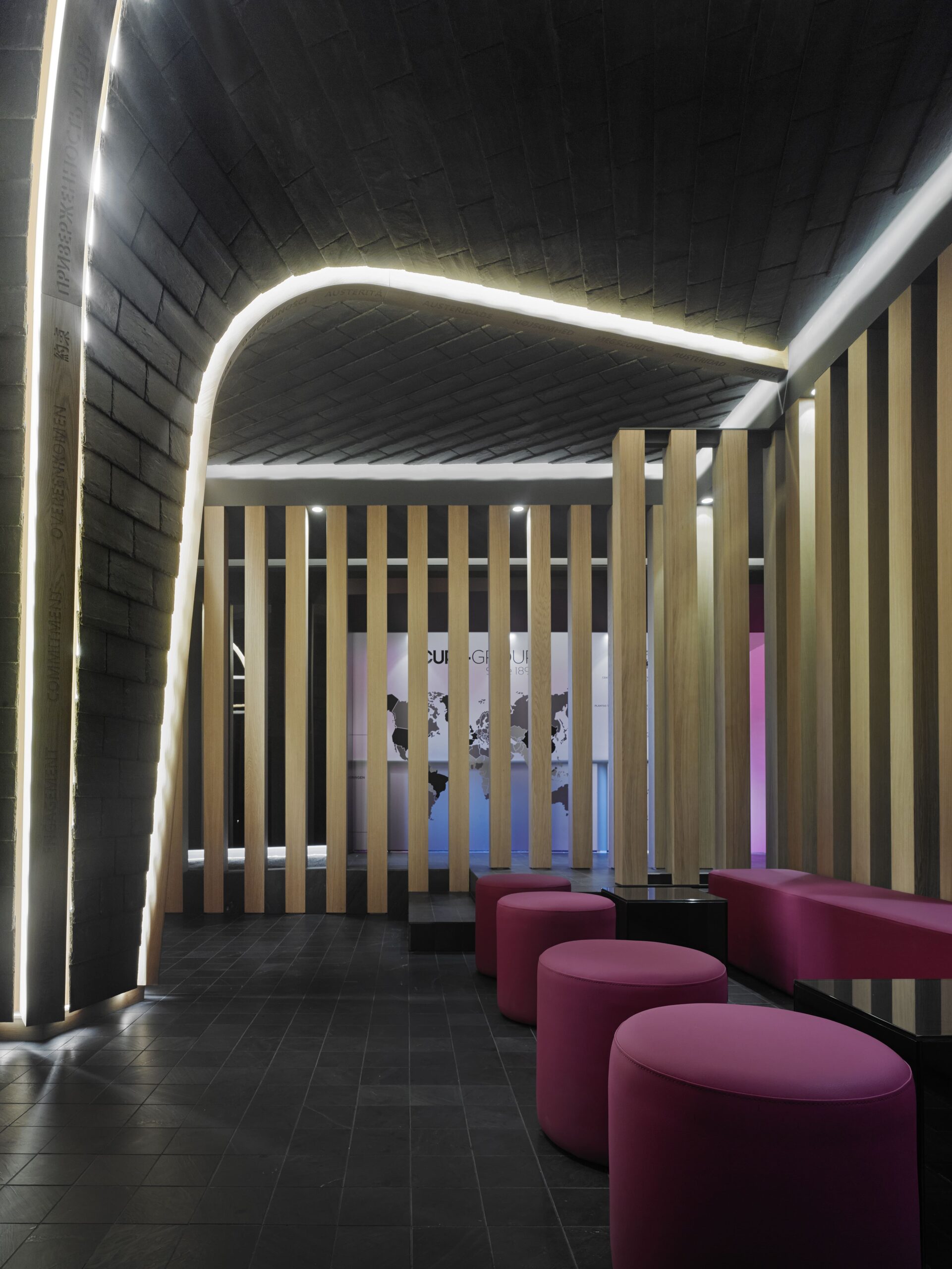 Estructura interior en MDF, revestida en gomaespuma y tapizado final en piel sintética. Color magenta. 40 cm. diámetro.
